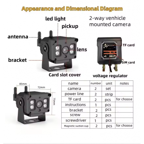 4G Car Video Surveillance 1 To 1 Outdoor Security Protection For Construction Machinery Trucks Excavators Voice Intercom Alarm